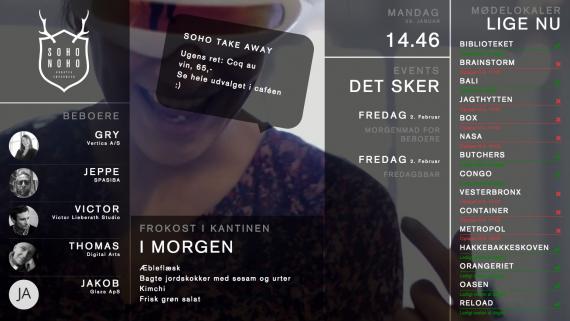 En simpel enkeltside med data hentet fra Soho / Noho's interne Nexudus system og en loopende video i baggrunden.